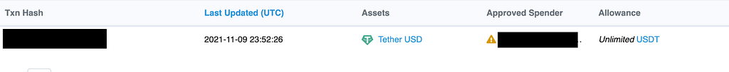 - Viewing the smart contract via a trusted token approval checker shows the true permissions being requested. The scammer gains delegated transaction approval status with an unlimited transaction allowance within the victim wallet, meaning the scammer can approve USDT sends of any amount on behalf of this wallet.